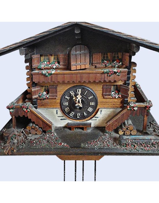 Antic Rellotge de Cucut Alemany de Fusta amb somreia i moviment del cucut, en perfecte estat de funcionament.Totes les peces originals. Mides aproximades:20cm.x25cm.