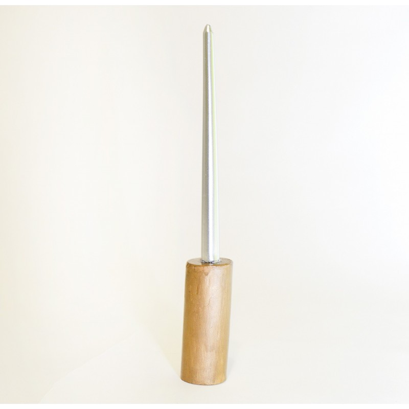 Candeler fet amb fusta pintat amb efecte or, amb forat per clavar espelmes estàndard de 1,5 cm. de diàmetre de base.