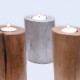 Portaespelmes fet amb fusta pintat amb efecte fusta setinada, amb forat per insertar espelmes estàndard recarregables de 4 cm. de diàmetre.