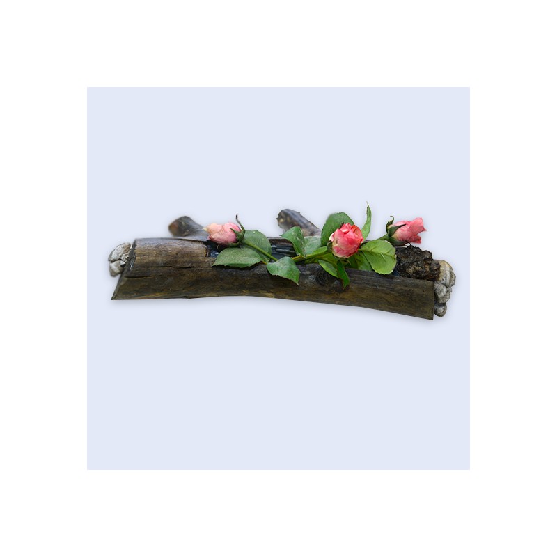 Test fet amb un tronc d'arbre buidat per dins i bolets silvestres naturals preservades enganxades en els seus extrems.