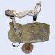 El pie de la mesita está hecho con un tronco de pino barnizado de tonalidad roble oscuro.